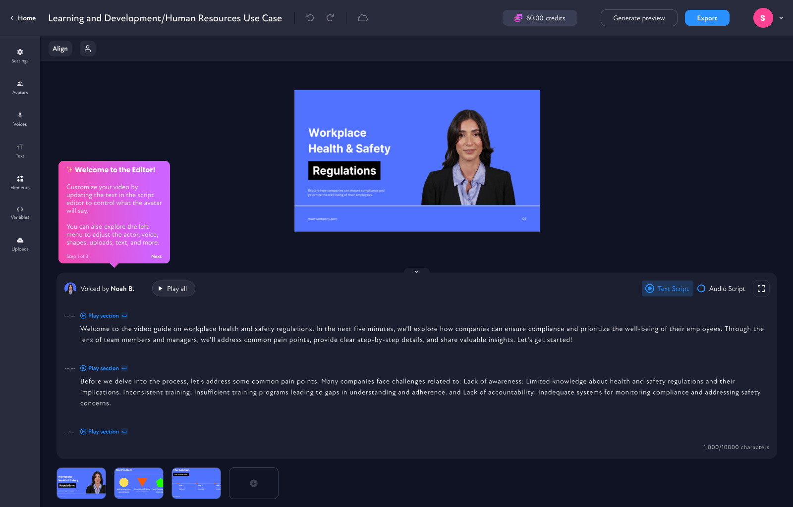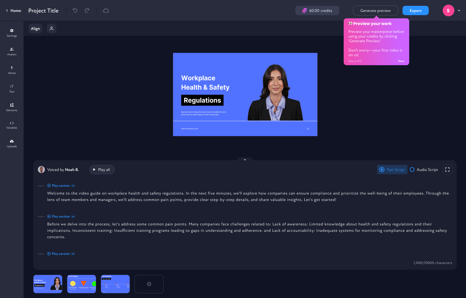 We introduced supplementary tooltips throughout the AI Video experience. These optional prompts provided helpful guidance to users who needed it while remaining unobtrusive for those who intuitively navigated the platform. This ensured a smoother and more accessible experience for all users.