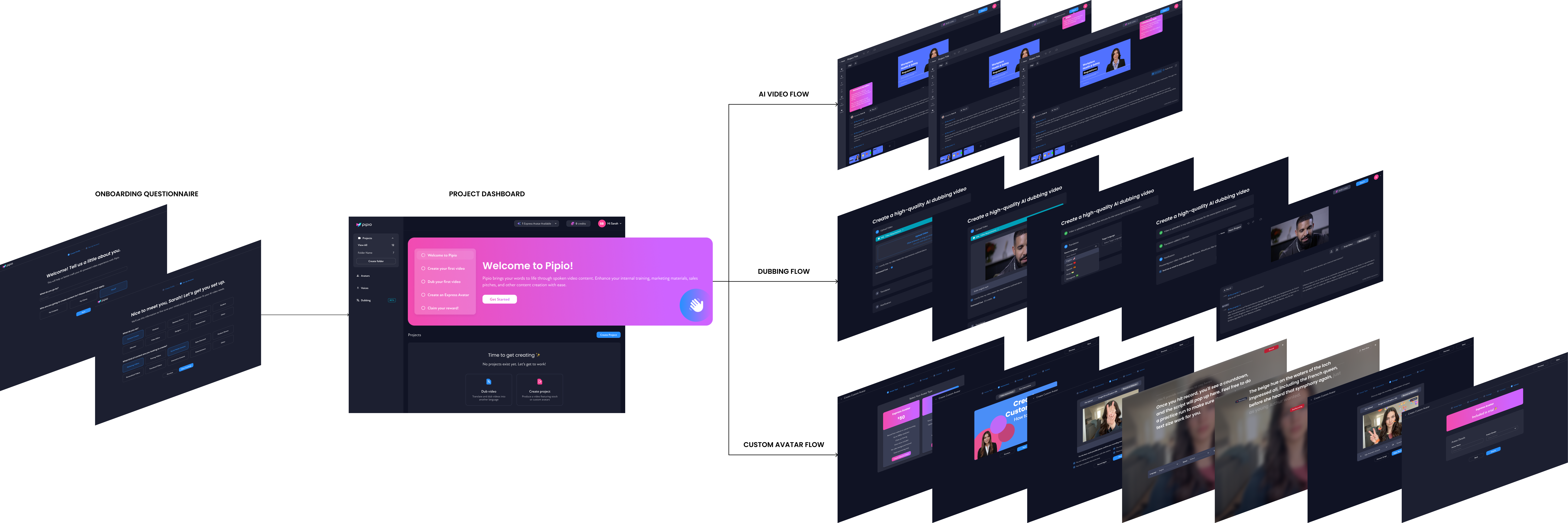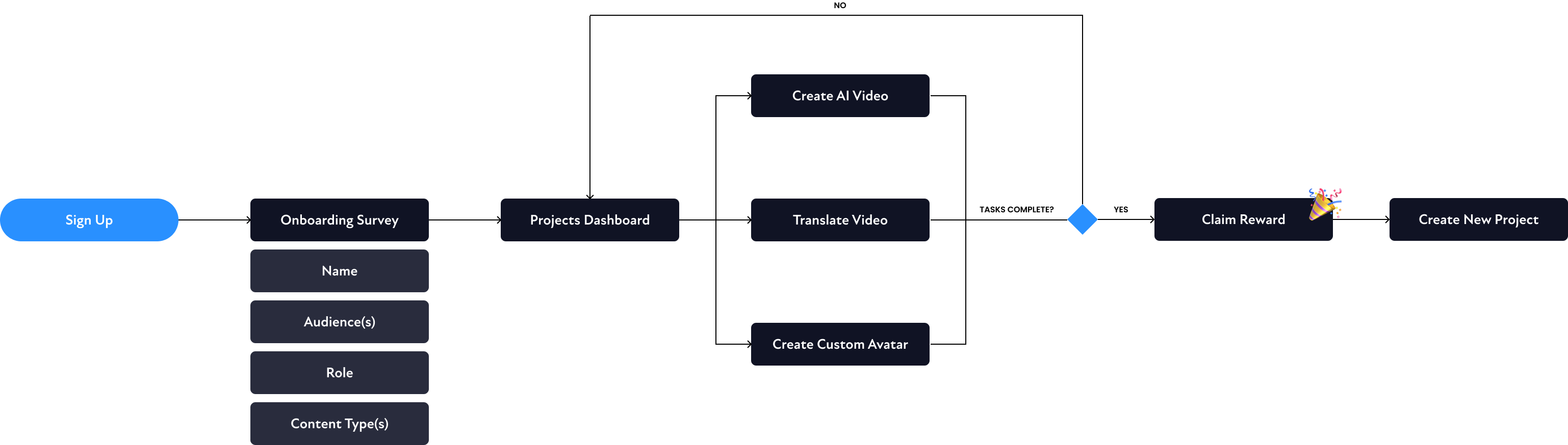 We launched the MVP onboarding flow and tracked user behavior and feedback through completion rates, engagement metrics (i.e. the number of projects started and exported, dubbing videos requested, and custom avatar requests), and conversion rates from trial to paid subscriptions.