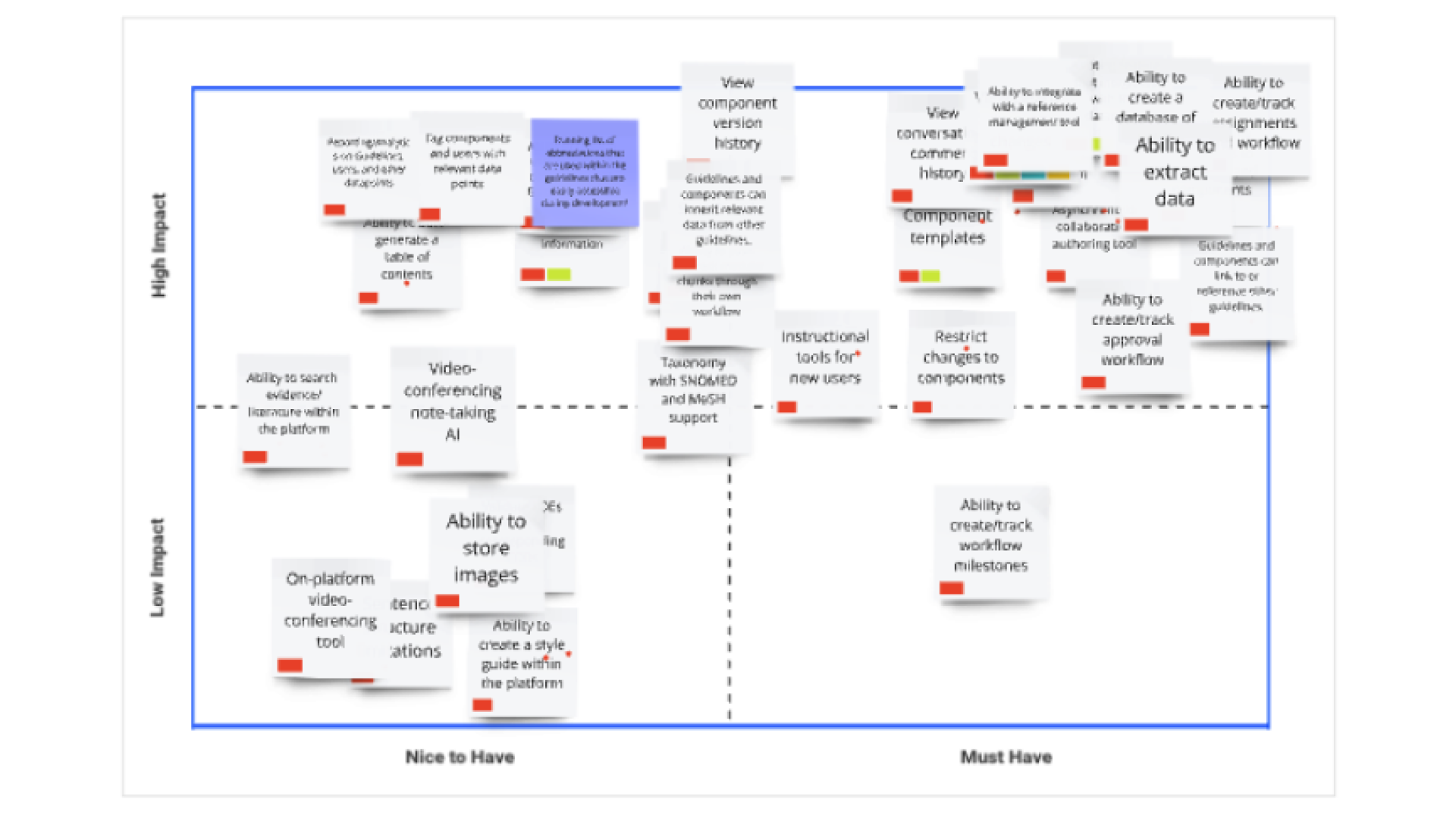 We collaborated to prioritize the list of requirements created from our conversations with the team. This helped stakeholders clearly understand which features were essential and where compromises could be made when selecting a content authoring tool.
